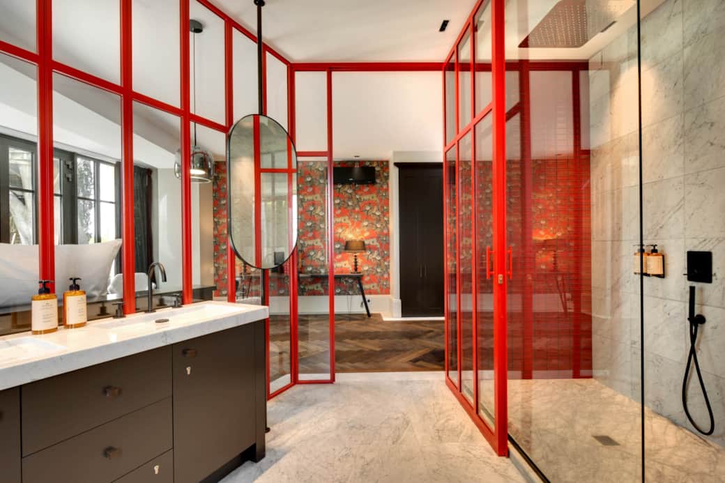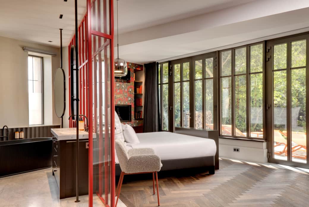 Featuring a terrace with garden views, this spacious, air-conditioned double room has a wardrobe and a private bathroom with a bathtub and shower.
