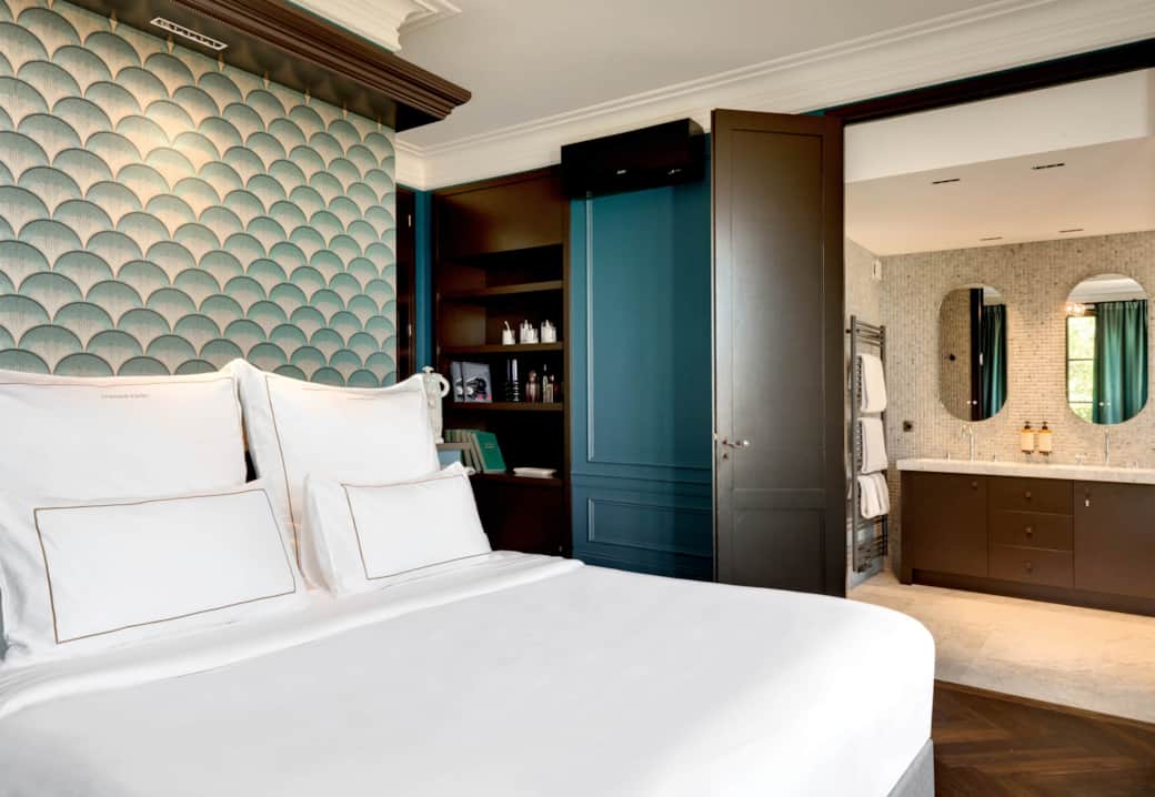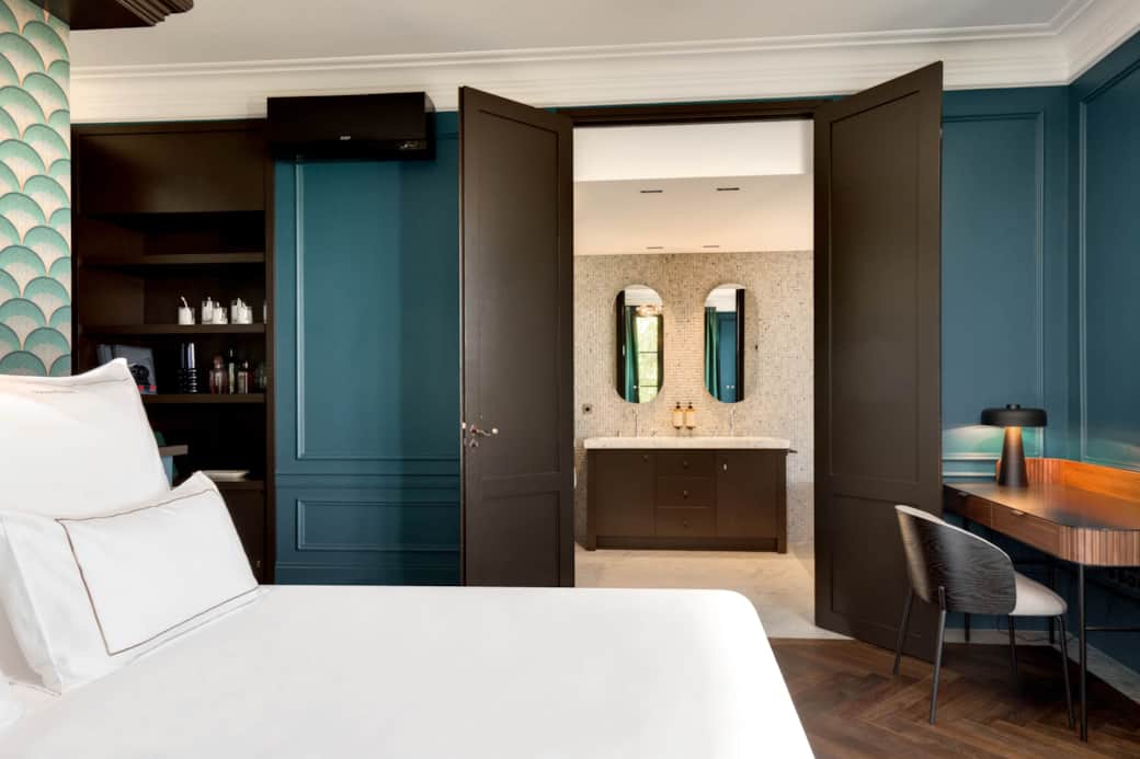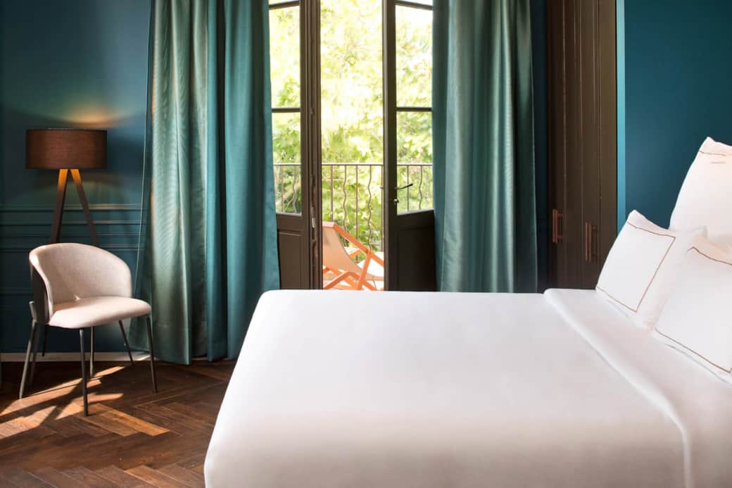 This double room features air conditioning, a wardrobe, and views over the Corbières. A balcony overlooking the park further enhances the space. The private bathroom is equipped with a bathtub.