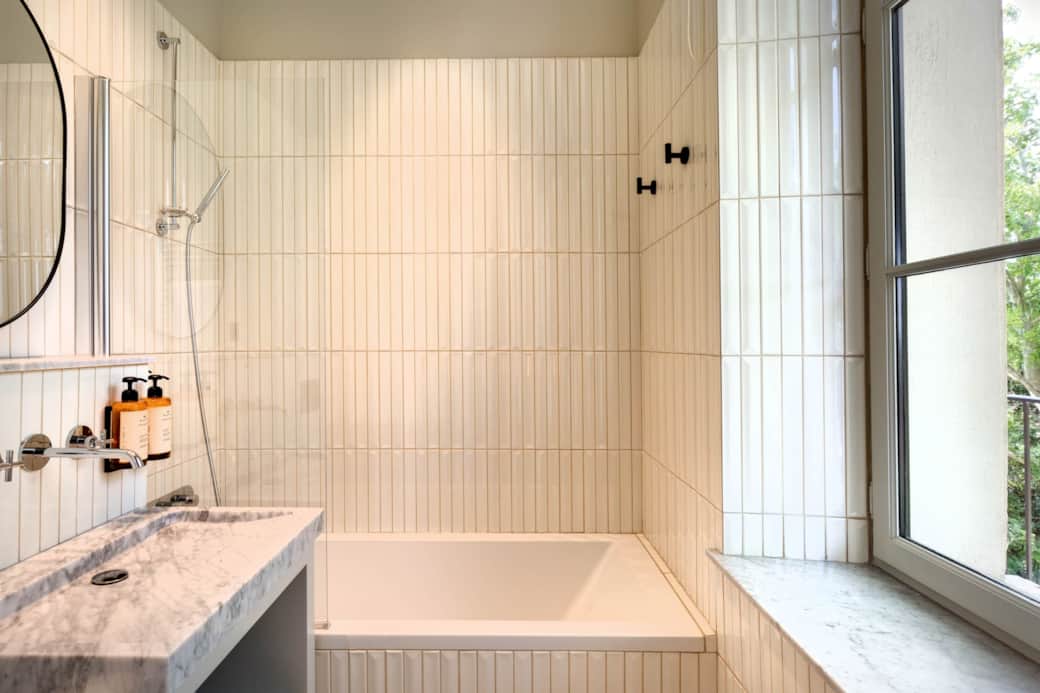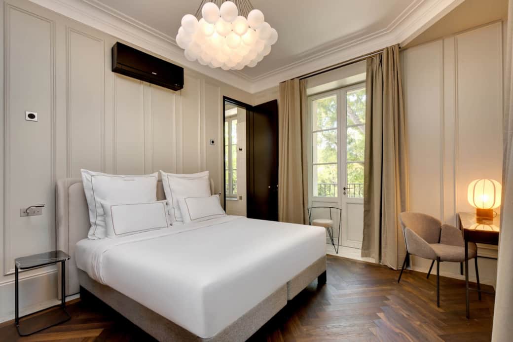 Cette chambre double dispose de la climatisation, d'une armoire et d'un balcon avec vue sur le parc du domaine. La salle de bains privative est pourvue d’une baignoire.